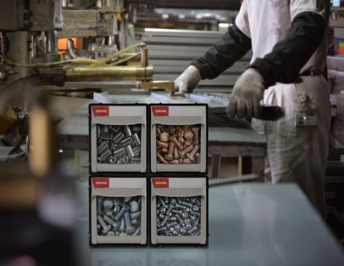 By mounting its revolutionary quick flip out bins onto a revolving tower, SHUTER has cleverly found a way to save space and make parts management easy. SHUTER's revolving tower quick flip out bins combine the function of a rotating stand, inspired by the retail industry, and fall-proof, grease-resistant ABS bins with a handy transparent window to create the ultimate in efficient storage for industrial settings.