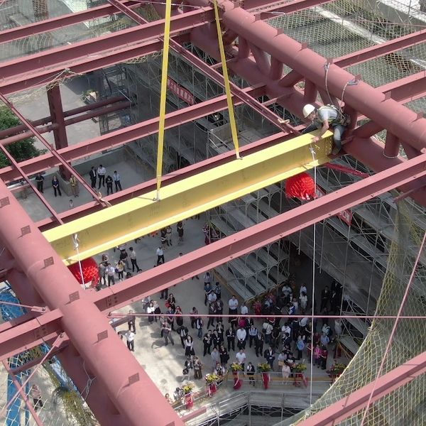 The construction of Babbuza Dreamfactory has been a true labor of love–pioneered by SHUTER Enterprise Chairman and second-generation owner Yira Wu. Last Friday, the project saw the second of three major milestones completed: the placement of the final construction beam. The eight-meter-long, gold painted beam will stand forever as a memorial for a dream that started way back in 2012.