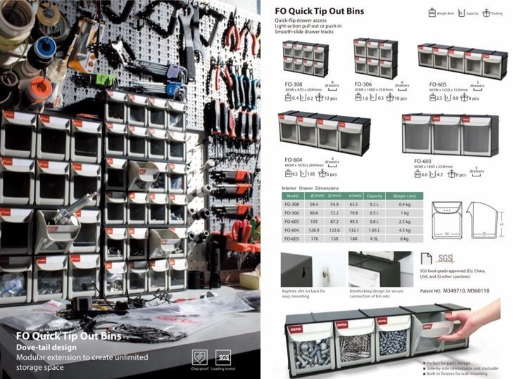 ◆ FO Quick Tip Out Bins – Clear, Modular Small Parts Management