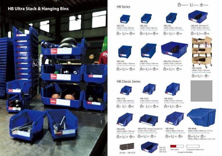 ◆ HB Industrial Hanging Bins – Stackable, Hangable, Space-Efficient