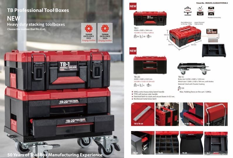 Individually or combined, the TB, HB, and FO series form a comprehensive modular storage system adaptable to a wide range of professional applications—from mobile tool management and workstation organization to scalable small parts storage solutions.Backed by more than 50 years of manufacturing expertise, SHUTER delivers durable, practical storage systems that enhance productivity, optimize workflows, and bring long-term organization to professional workspaces worldwide.