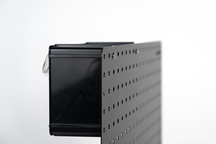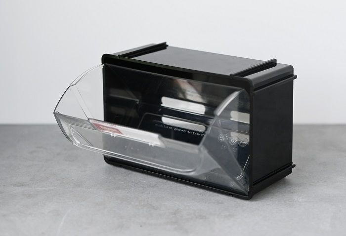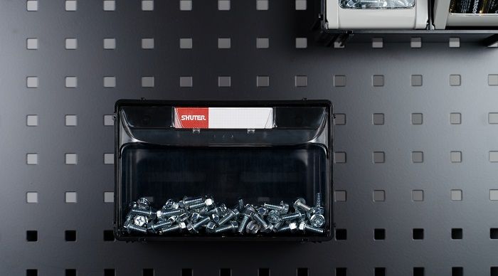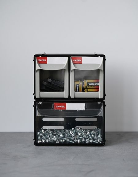Industrial workstations often struggle with the awkward storage of bulky components and essential hand tools that simply do not fit into standard-sized organizers. The SHUTER FO-201 Wide-Format Industrial Tilt Bin bridges this gap. Boasting a generous 1-liter capacity and an elongated footprint, this large capacity tip-out drawer is the ultimate solution for storing wrenches, screwdrivers, thick industrial wiring, and oversized pneumatic fittings.Designed to function as a reliable industrial hand tool storage bin, it keeps your workbench entirely clear of clutter while keeping crucial instruments within arm's reach. Built with shatter-proof materials and a patented anti-drop mechanism, the FO-201 ensures that heavy tools remain secure even in high-vibration manufacturing environments. Because it shares the same external dimensions as our FO-202 model, facility managers can effortlessly integrate this heavy-duty component organizer into a mixed-storage matrix, creating a highly efficient, custom-built workstation perfectly suited for heavy industry and commercial mechanics.