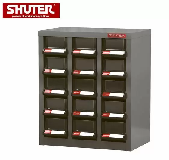 15 tiroirs en 3 colonnes avec corps en ABS et fenêtre transparente en PS