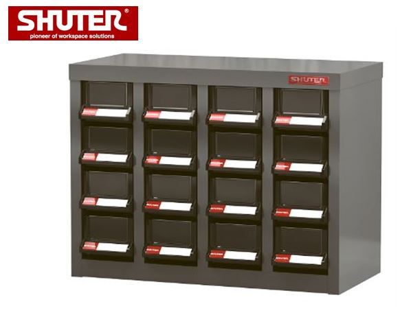 - Tipo de gaveta: 16 gavetas em 4 colunas com corpo em ABS e janela transparente em PS. Cada gaveta tem uma capacidade máxima de carga de 10 kg e um volume de 1,2 litros.